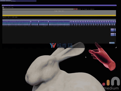 从下面你可以看到Medium的应用内分析工具。顶端的橙色条是每帧的时间,而你可以看到其相当稳定。视频中出现了多次移动操作,而每一个都需要数帧才能完成。有4个CPU线程正在进行中,以蓝色/紫色条显示。最顶端的线程是主线程,其正在持续地生成帧;后三个线程则在执行移动工具任务,与主线程异步运行,并需要数帧才能完成。它们不会影响整体的帧时间。