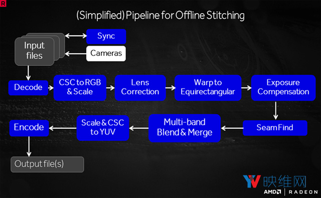 )本文将简要介绍360度视频的拼接,以及AMD是如何优化代码以支持实时运行。首先,我们先看看整体的软件层次结构,然后再看看整体的Radeon Loom拼接管道。