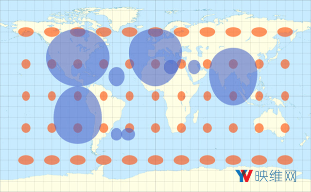 360度视频播放器应用程序可以将上面的扁平等量矩形图像扭曲成一个球体,如下所示: