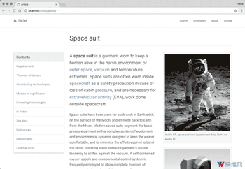Article的2D部分是通过现成库和现代Web工具所构建。对于响应式布局和排版,以及整体主题,我们使用了Bootstrap(这使得开发者可以轻松创建能够自适应地响应不同设备屏幕大小的优秀网站)。为了致敬维基百科和Medium,我们采用了Bootswatch的Paper主题。为了管理从属关系,类和构建步骤,我们使用了NPM,ES6,Babel和Webpack。