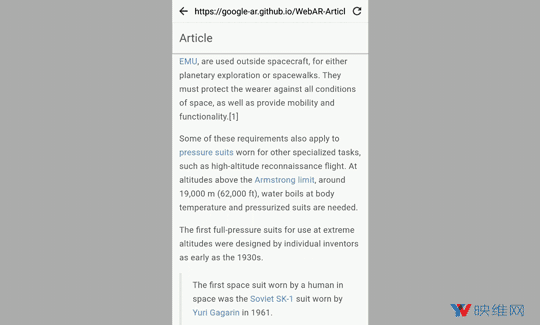 表示,为了帮助尽可能多的用户,他们正在探索如何把增强现实带入网页平台,这样未来所有人都能通过浏览器来使用这种新技术。在这篇文章中,谷歌将介绍他们最新构建的原型。从今天的移动浏览器和桌面浏览器再到未来支持AR的浏览器,映维网将与大家一起探索AR内容如何在网页上运行。请注意:文章最后一部分主要是探讨技术细节,所以如果你想进一步深入,请耐心读完本文。