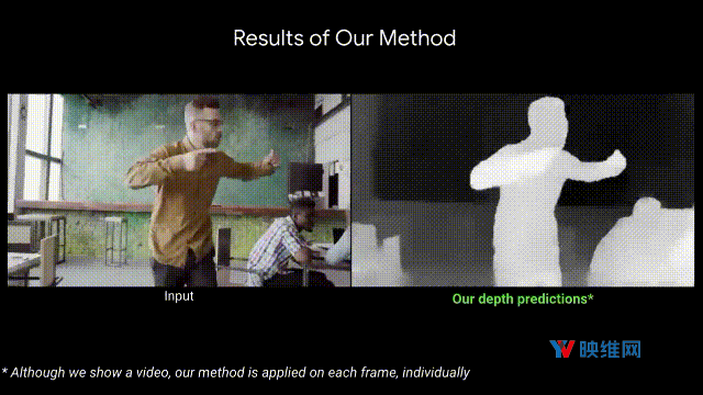 这篇论文中,谷歌的研究团队应用了基于深度学习的解决方案。所述方法可以根据摄像头和对象都能自由移动的普通视频生成深度图,并且通过关于人体姿势与形状的机器学习来避免直接的3D三角测量。尽管业界近来已经开始利用机器学习进行深度预测,但谷歌表示,他们的研究是首个为摄像头和对象自由移动的情况而开发的深度学习方案。对于这项研究,谷歌主要专注于人类,因为它们适用于增强现实和3D视频效果。