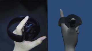 Oculus Touch提供了Vive手柄所提供的大部分功能之外,还提供了更好的人体工学改进,以及简单的部分手指追踪功能:拇指和食指开关式追踪(只有张开和握紧)。它无法模拟(连续的)手指弯曲的精确追踪,而且只作用于两根手指。另外的三指弯曲检测是通过一个抓握按钮来实现的。它让用户更进一步地感受到了虚拟世界中手部的存在,但它仍然受到许多方面的限制。