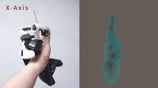 拇指追踪本身也很重要。对于大多数手部追踪解决方案,其目的只是单纯的重建看起来像真手的虚拟手,而不是重建基于真手运动原理的虚拟手。例如,当你用手柄抓取虚拟物体时,虚拟的手会自动合拢呈抓握状态,然后手柄会振动。足够逼真的手部模型和动画效果可以达到障眼法的效果,在不需要将特定的反馈应用在各个手指的时候,这是可行的。但这不是真实的力反馈,甚至算不上触觉反馈。为了让力或振动发生在适合的位置并输出适合的大小,手的虚拟重建需要尽可能接近真实。我们的拇指有3个自由度,如果我们一开始就忽略拇指数据,那我们就不可能准确提供反馈。这就是为什么我们的Dexmo 具备捕捉所有拇指动作的能力。