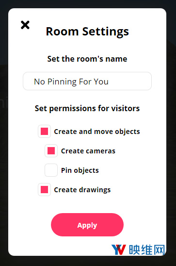 房间所有者现在可以指定授予房间中的其他用户的功能。这允许你决定其他人是否可以向房间添加媒体,张贴涂鸦,以及创建相机。如果会议或活动的人数较多,这项功能可以允许你维持房间的秩序。