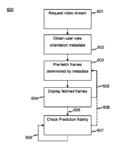 专利描述了用于360度视频流的预测性预取技术。为包括多个视口数据的360度视频流获取用户视图方向元数据。根据用户视图方向元数据预取与一个视口的一个或多个高分辨率帧相对应的数据,并显示相关帧。