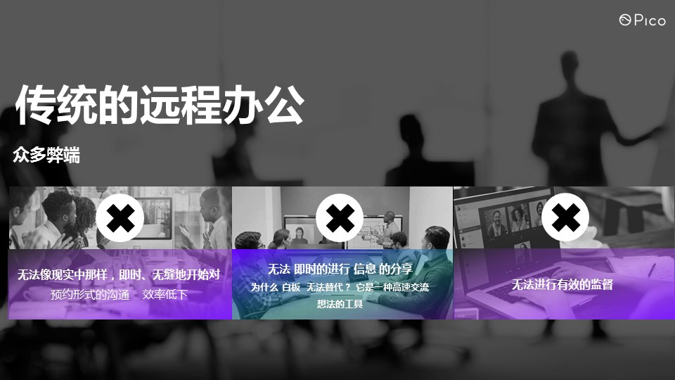 针对这些已有的远程办公方案,张明表示我们的工作效率并不高。他说,首先我们无法像现实一样及时地与人互动,其次无法进行及时地分享信息传递资料,最后无法提供有效的管理监督。但他相信这些问题可以通过VR得到比较有效的解决。