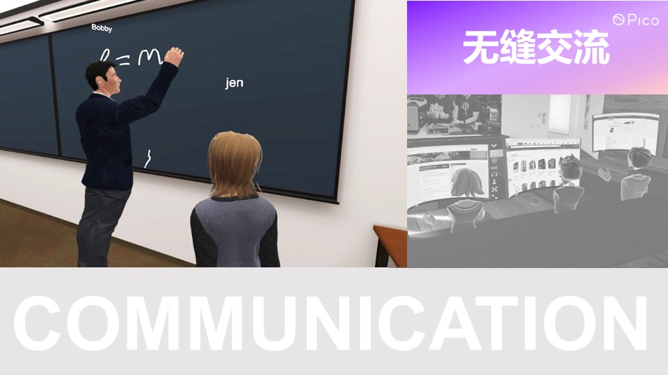 第二,VR可以实现快速共享3D和白板信息,这在当前的会议系统中是无法达到的,VR让大家可以在一个白板上书写时大家可以互相看到。