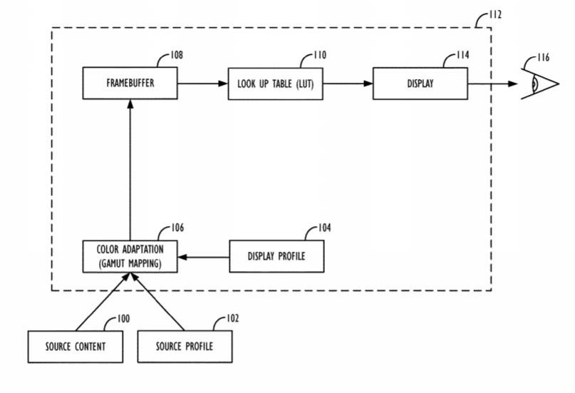专利描述的技术使用显示设备来预测所述显用户的当前视觉适应。使用用户的预测自适应来优化显示内容的编码。所述编码可以在编码时完成,并且可以在显示管道中执行,或者优选地在显示本身的传递函数中执行,从而降低显示管道中所需的精度。