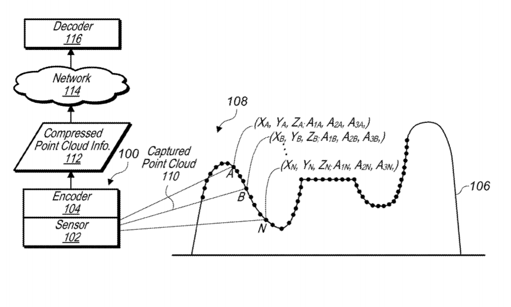 专利描述的系统包括:编码器,其配置为压缩点云的属性信息和/或空间;和/或解码器,其配置为解压缩点云的压缩属性和/或空间信息。为了压缩属性和/或空间信息,编码器配置为将点云转换为基于图像的表示。另外,解码器配置为根据基于图像的表示来生成解压缩的点云。