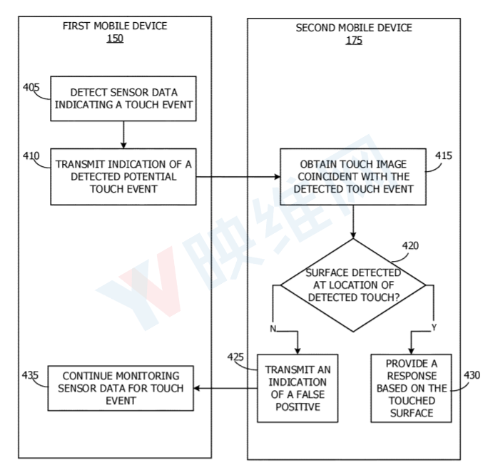 在一个或多个实施例中,可利用触碰图像来确定触碰的假阳性。例如,IMU可以根据特定的力来检测触碰,但力可以与触碰无关。作为一个例子,力可以与手臂或手腕的抽搐有关。相应地,在一个或多个实施例中,第二设备可在检测到触碰事件时捕获触碰图像,并根据触碰图像确定触碰事件是不是真正的触碰事件。例如,在检测到触碰事件时,如果所捕获的图像显示触碰对象不在表面附近,则可以确定检测到的触碰事件是假阳性触碰事件。基于深度学习的方法可以用来将真实的触碰事件与其他非触碰事件进行分类。分类可以基于IMU数据进行分类。深度学习网络可以是LSTM(长短期记忆)、RNNN(循环神经网络)或任何时间相关的网络。