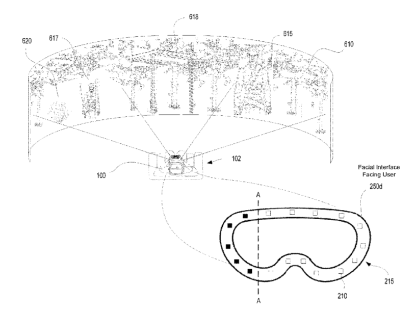 专利描述的头显包括布置在光学透镜后面的显示屏幕,以便当用户佩戴头显时,光学透镜位于显示屏幕和用户的眼睛之间。显示屏幕配置成用于渲染VR内容。头显包括配置成在用户佩戴时围绕着用户头部贴合的支撑结构。其中,光学透镜和显示屏幕布置在支撑结构内,以使显示屏幕在用户佩戴头显时位于眼睛的前方。头显包括布置在支撑结构中的热能组件。其中,热能组件可控制地提供热量,从而响应于显示屏幕所显示的VR内容环境线索。