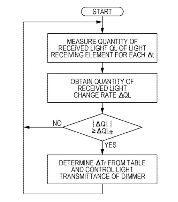 专利描述的显示装置包括第一图像显示装置。所述第一图像显示装置包括导光板、调光器和光控制装置。光线控制装置配置为确定显示装置接收到的光量变化的开始时间,并根据光量控制调光器的透射率在开始时间过后的预定时间后控制调光器的透射率。