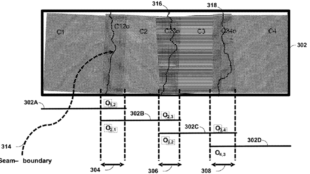 专利描述的设备配置为确定第一图像和第二图像之间的重叠区域,根据包含在第一图像中的颜色数据确定与重叠区域相对应的第一直方图,并根据包含在第二图像中的颜色数据确定与重叠区域相对应的第二直方图。处理器配置为根据第一直方图和第二直方图确定一个映射函数,所述映射函数实质上将第二直方图映射到第一直方图,并将映射函数应用到第二图像,以生成相对于第一图像的归一化第二图像。