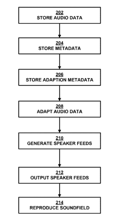 专利描述了用于虚拟现实、混合现实、增强现实、计算机视觉和图形系统的向后兼容方法。所述方法允许支持较少自由度的设备渲染具有更多自由度的音频数据。在一个实施例中,设备包括存储器。存储器配置为存储代表在多个捕获位置捕获的声场音频数据、使音频数据渲染为支持N个自由度的元数据、以及使音频数据渲染为支持M个自由度的自适应元数据。所述设备同时包括耦合到存储器的一个或多个处理器,所述一个或多个处理器配置成根据自适应元数据来自适应音频数据并提供M个自由度,并且根据自适应音频数据生成扬声器馈送。