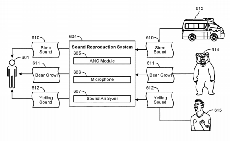 专利描述的方法可包括经由声音再现系统应用声音消除,所述声音消除能够降低各种声音信号的振幅。所述方法同时包括在声音信号中识别振幅减小的外部声音。然后,分析所识别的外部声音并确定所识别的外部声音是否可被用户听到,并且在确定可被用户听到时,修改声音抵消以使所识别的外部声音。