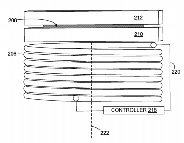 专利描述的触觉致动器包括一个感应线圈、一层可压缩材料、以及定位在可压缩材料层之上的磁铁。在将控制信号应用于电感线圈时,磁铁能够通过压缩可压缩材料而相对于电感线圈可移动。