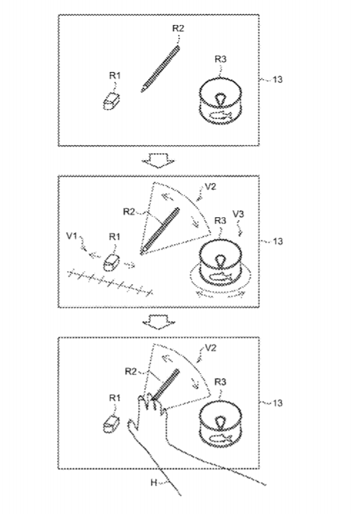 专利描述的信息处理装置包括控制显示的显示控制单元。在用户选择第一真实对象作为待操作对象的情况下,所述显示控制单元使得存在于真实空间中的第一真实对象和第二真实对象的显示识别为待操作对象的候选者。根据用户的选择,在与第一真实对象的位置相对应的真实空间第一位置显示与第一真实对象相对应的第一虚拟对象,并且在用户选择第二真实对象作为要操作的对象的情况下,根据用户的选择,在与第二真实对象位置相对应的真实空间第二位置显示与第二真实对象相对应的第二虚拟对象。