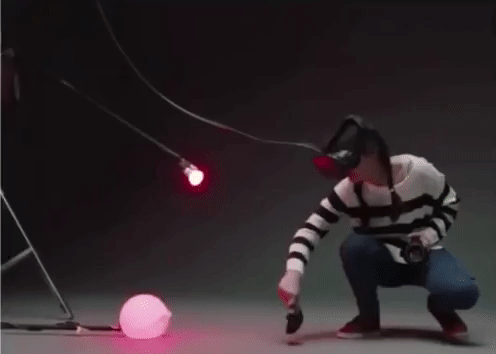 在实景中添加光源,使得演员的身体“被虚拟的红色光束照亮“!(出自Tilt Brush宣传片)