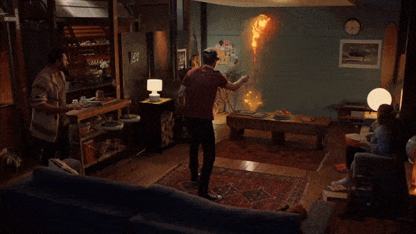 因此,解释(或者欺骗)虚拟物体从哪里来就很重要了。真实世界中不存在“瞬移”,没有什么物体会瞬间出现在我们的世界里。你可以用传送门、全息投影、烟雾或其他有创造力的方式,让你的角色从无到有进入你的房间。