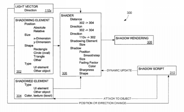 可以在不依靠计算昂贵的多次渲染遍历和采样的情况下生成动态柔和阴影。专利描述的系统和方法可以在单通道中渲染动态柔和阴影。在一些实施例中,脚本可与着色器一起使用,以根据阴影投射元件和光矢量的位置和大小来渲染具有真实大小,形状,位置,渐变因子和清晰度的阴影。