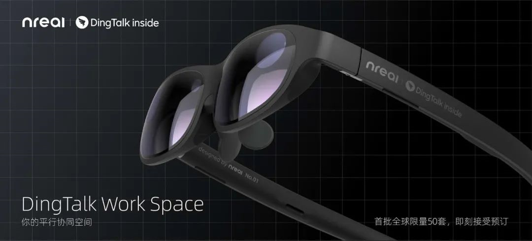 Nreal联合阿里旗下的智能移动办公平台钉钉于今日共同发布了首款内置Dingtalk Work Space的产品“Nreal AR眼镜套装专业版”。