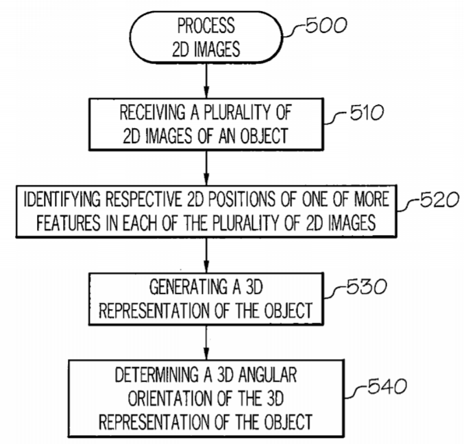 专利描述了一种创建3D图像的方法。所述方法包括接收对象的多个2D图像,识别多个2D图像中每个特征的各个2D位置,根据各个2D位置生成对象的3D表示,以及根据3D表示中的一个或多个特征的相对位置来确定3D表示的3D角方向。