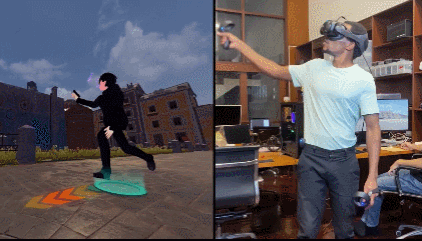 Deca团队表示,DecaMove移动方案适用于身体协同性强的VR游戏,比如一边逃跑一边射击,并且移动范围不大,也适用于狭小的空间。