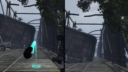 左:一般的瞬移方式;右:DecaGear臀部追踪方式