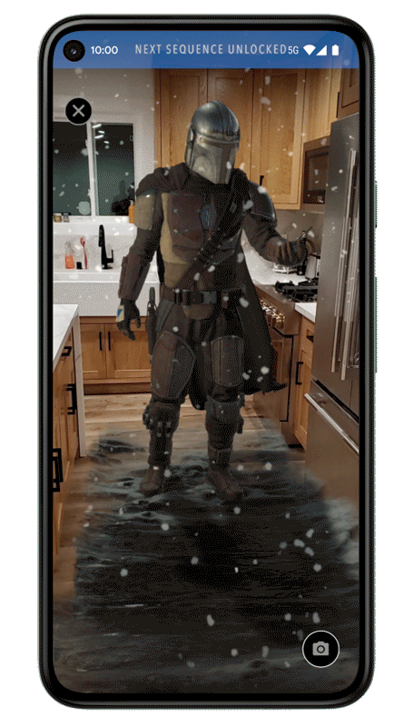 《曼达洛人 AR体验》使用了Google的开发人员平台ARCore来构建增强现实体验,从而创建有深度的环境互动。借助新的ARCore深度API,该应用实现了虚拟对象的遮挡功能,使3D场景与真实世界更加自然地融合。