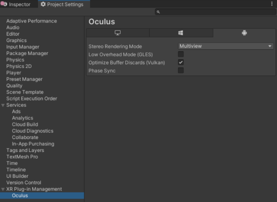要在Unity中使用Phase Sync(相位同步),必须使用XR Plugin Management下的Oculus XR Plugin。Unity 2019.4及更高版本,以及Oculus XR Plugin1.7.0支持Phase Sync(相位同步)。你可以选中以下复选框以在Oculus特定设置中启用: