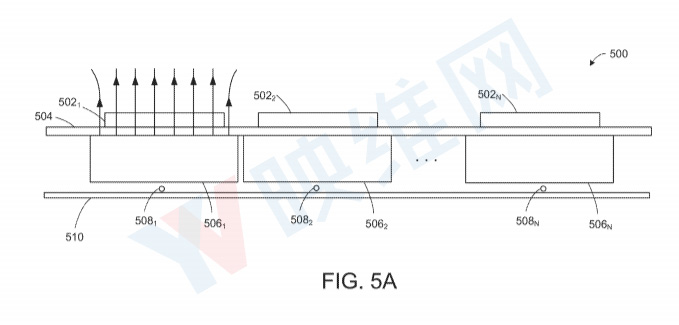 图5A是LC控制系统#500的横截面示意图。如图所示,LC控制系统#500包括像素阵列,像素阵列包括各自的LCs 502.sub.1到502.sub.N(统称为LC#502)和相应的磁体506.sub.1到506.sub.N(统称为磁体#506)。LC控制系统#500的全部或部分组件可以彼此物理接触,彼此共享基板,彼此层压,彼此光学接触,彼此之间具有折射率匹配流体或光学胶,和/或彼此之间可以具有空间。