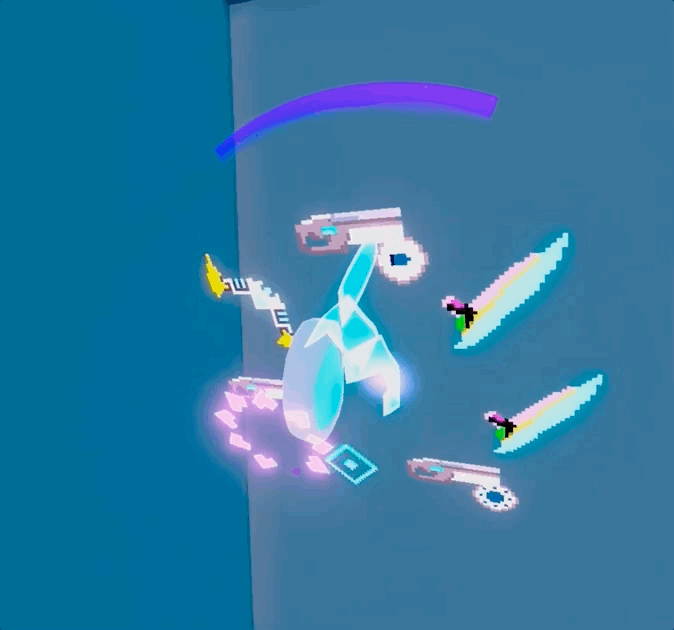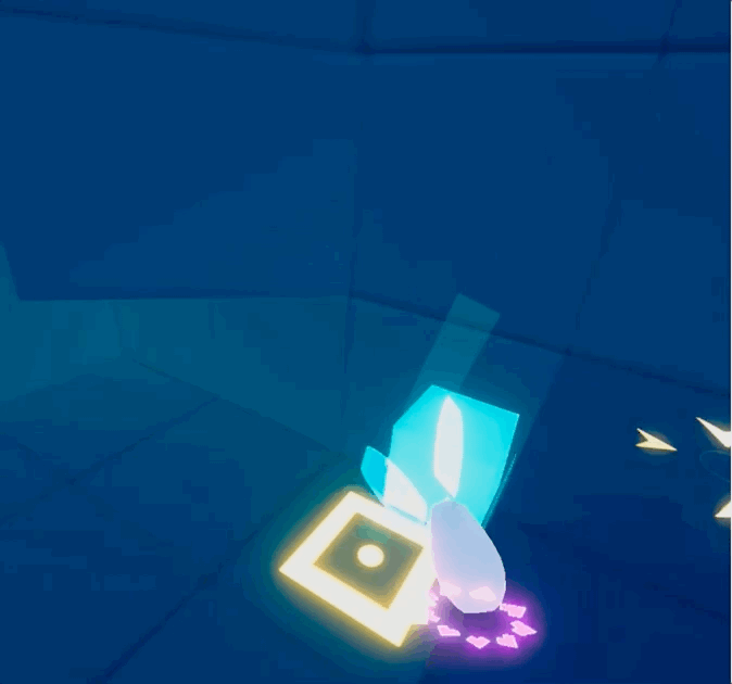 游戏中不同关卡会有不同的小怪,打掉小怪掉落碎片,玩家举起没有持有武器的手即可收起碎片,碎片提供生命值回复,生命值可以在掌心查看。
