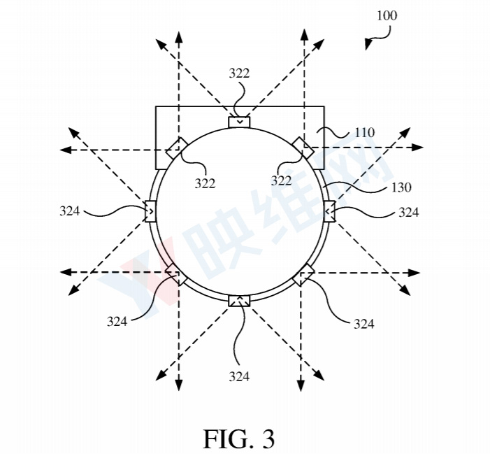 在2019年9月提交的头显专利申请。其中,苹果构思了一种搭载多个摄像头,以协同地提供360度现实物理视图的头戴式显示器。