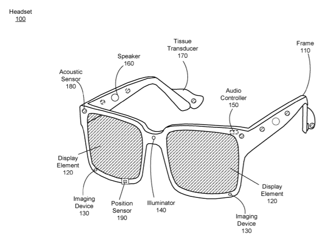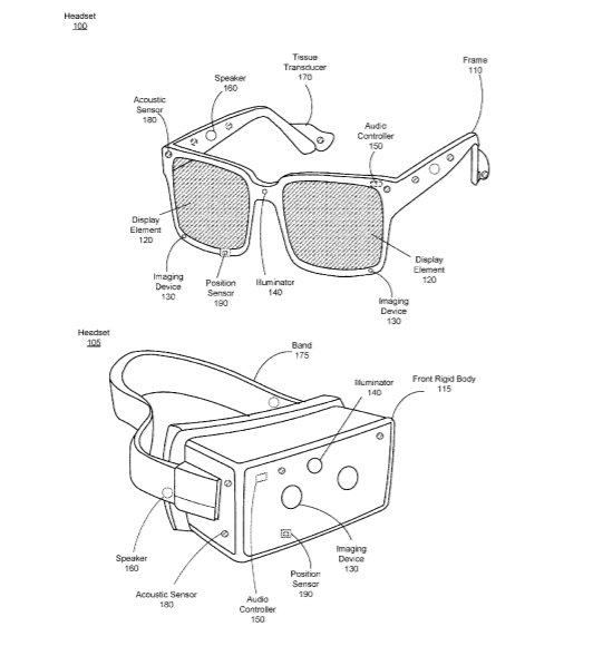 专利描述的音频系统包括换能器阵列、传感器阵列和控制组件。换能器阵列向用户呈现音频内容。所述控制组件控制所述换能器阵列,以在向用户呈现音频内容的同时,通过驱动换能器阵列中的至少一个换能器来调整传递给用户的触觉内容水平。音响系统可以是头显的一部分。