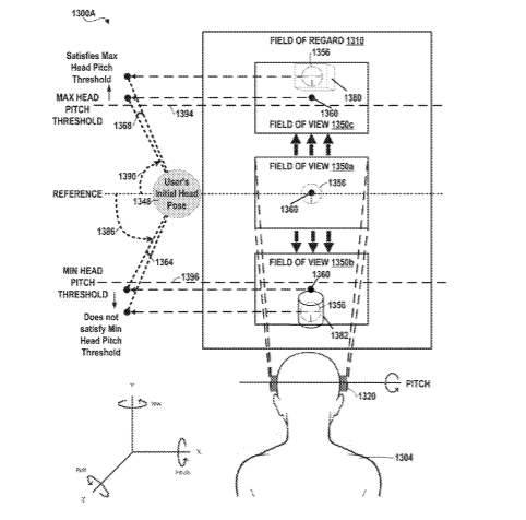 专利描述了在增强现实或虚拟现实环境中显示虚拟标线的系统和方法。所述环境可以包括真实或虚拟对象,并可允许用户通过一系列的姿态来与其进行交互,如头部姿态,眼睛姿态/注视点,或身体姿态。用户可以通过改变相关姿态来将虚拟标线指向目标对象,从而进行对象选择。可穿戴设备可以识别用户头部或眼睛方向位于可接受/舒适头部姿态或眼睛姿态范围之外,并加速标线离开默认位置并朝用户头部或眼睛运动方向的运动,从而减少用户对齐标线和目标的运动量。