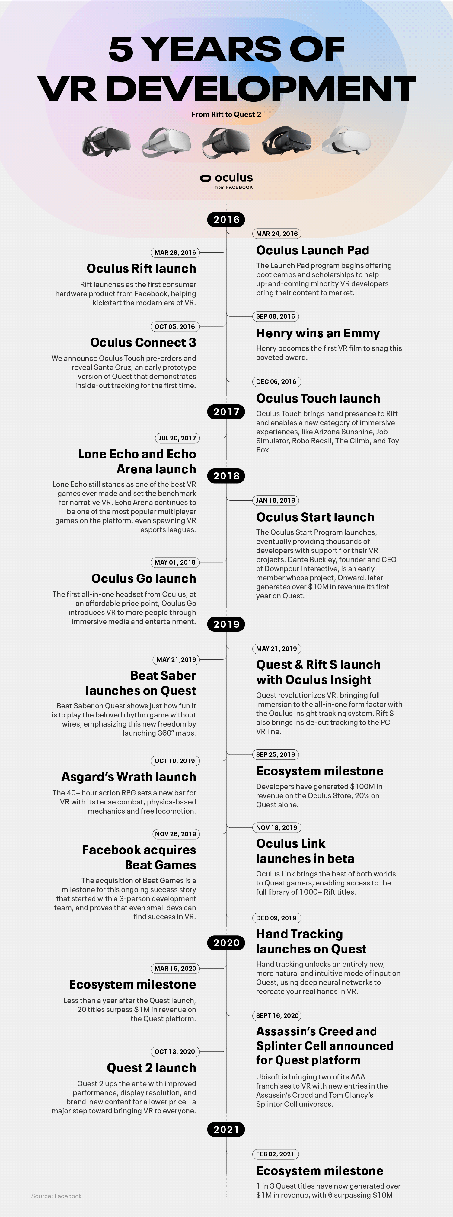 Oculus的目标是为玩家和开发者提供一个更为强大、更可定制的设备,而且要少花100美元。当疫情来袭时,这个目标变得更加难以实现,但团队克服了重重困难并在10月发售了Quest 2。这款设备取得了优异的成绩,而且同样帮助开发者取得了巨大的成功。