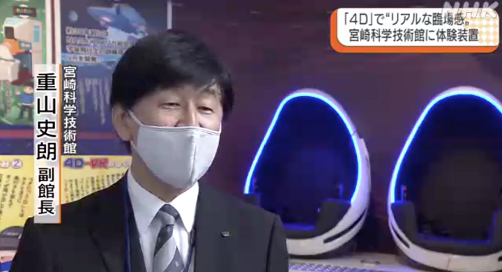 NHK派出主持人亲身前往宫崎科技馆,使用4D-Pro一体机体了解物理与空间技术,观察星空现象。体验期间,大朋VR一体机联动弹椅与吹风系统给予体验者身临其境的感受。体验结束后,NHK主持人表示意犹未尽,对大朋VR4D-Pro项目作出了高度评价:沉浸感强,科普价值高,非常值得体验。