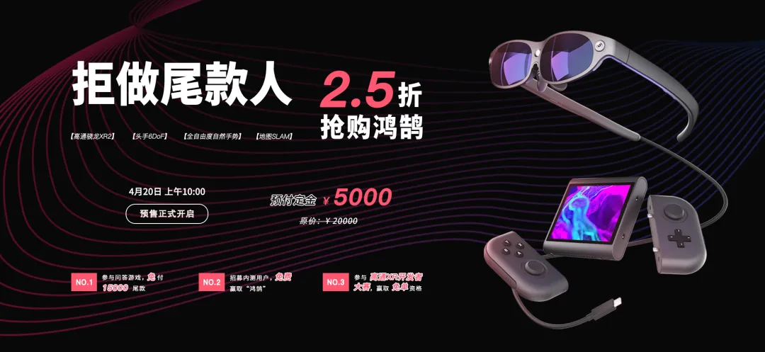 头手6DoF MR眼镜“鸿鹄”将于4月20日开始预售