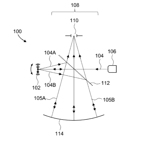专利描述了一种用于近眼显示器的光束扫描器,光束扫描器包括光束折叠光瞳继电器,所述光束折叠光瞳继电器配置成接收从可倾斜反射器反射的光束,并将所述光束中继到出射光瞳,同时保持所述反射光束的光束角。光束折叠光瞳继电器包括分束器,例如偏振分束器,其配置成将光束重定向到弯曲反射器。所述弯曲反射器将光束发送到出射光瞳。通过设置在偏振分束器和弯曲反射器之间的光束的光路中的波片,可以将从弯曲反射器反射的光束的偏振改变为正交偏振,使得反射的光束能够通过偏振分束器向出射光瞳传播。