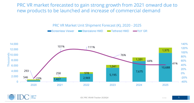 IDC预测,一体机出货量有望在未来5年不断攀升,于2025年获得74.5%的中国区市场份额;这和大朋VR的战略规划保持一致。大朋VR在今年将有2款新品分别在Q2、Q3推出,构建VR市场新阵容。新品将持续贴合市场趋势,延续2020年市场份额的强势劲头。