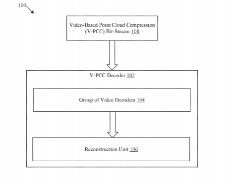 专利描述了一种用于在点云重建之前同步解码帧的方法和基于视频的点云压缩(V-PCC)解码器。接收包括与点云序列相关联的编码帧的V-PCC比特流。接收到的V-PCC比特流的子流由V-PCC解码器的一组视频解码器解码以生成V-PCC组件,例如属性组件、几何组件、占用地图组件和地图集组件。分别基于第一输出延迟、第二输出延迟、第三输出延迟和第四输出延迟来延迟将属性组件、几何组件、占用地图组件和地图集组件释放到重建单元。在重建单元基于V-PCC组件重建点云之前,延迟释放将属性组件、几何组件、占用地图组件和地图集组件彼此同步。