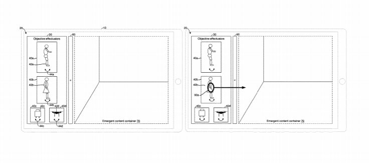 在一个实现中,一种方法包括显示用户界面,所述用户界面包括objective-effectuator和操作objective-effectuator的第一可供性。在一个实现中,objective-effectuator的特征包括一组预定义的目标和一组视觉呈现属性。在一个实现中,所述方法包括在紧急内容容器中实例化objective-effectuator。在一个实现中,紧急内容容器允许目objective-effectuator执行满足预定义目标集的操作。在一个实现中,所述方法包括显示与紧急内容容器相关联的第二可供性。在一个实现中,第二可供性控制紧急内容容器的操作。