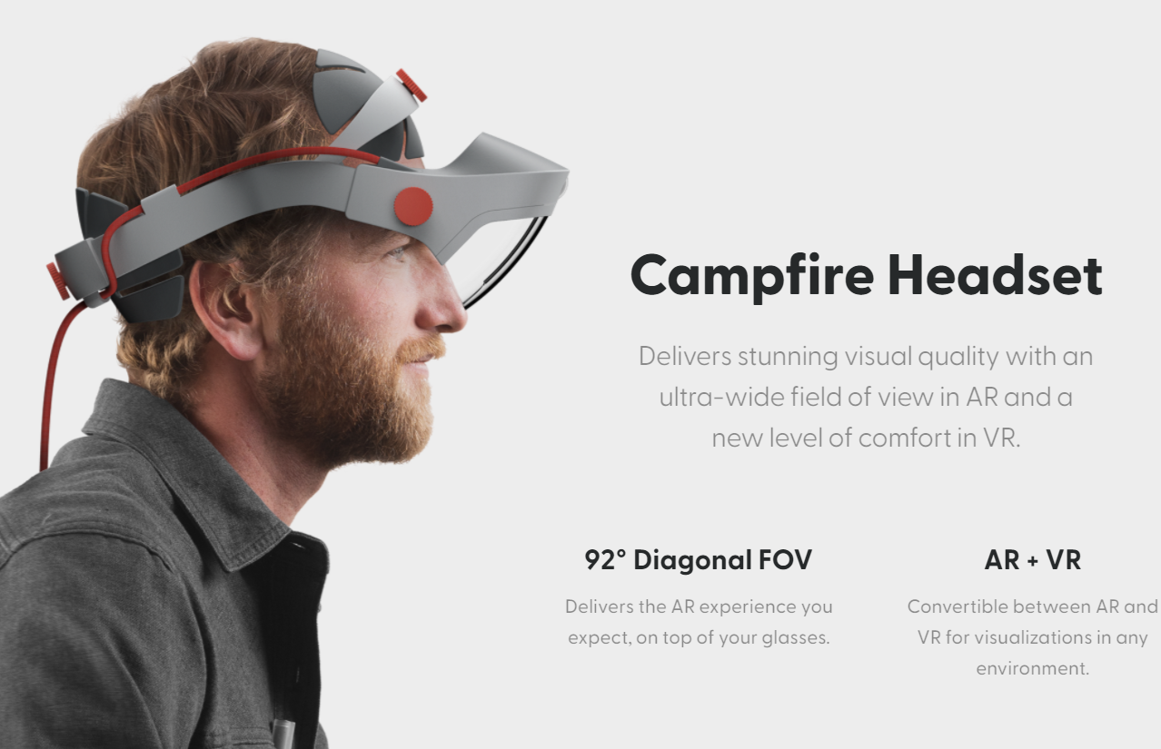 Campfire Headset:这款视场达到92度的AR头显同时支持VR。设计师可以直接在真实世界视场中叠加全息内容,或者在完全数字化的环境中可视化对象。