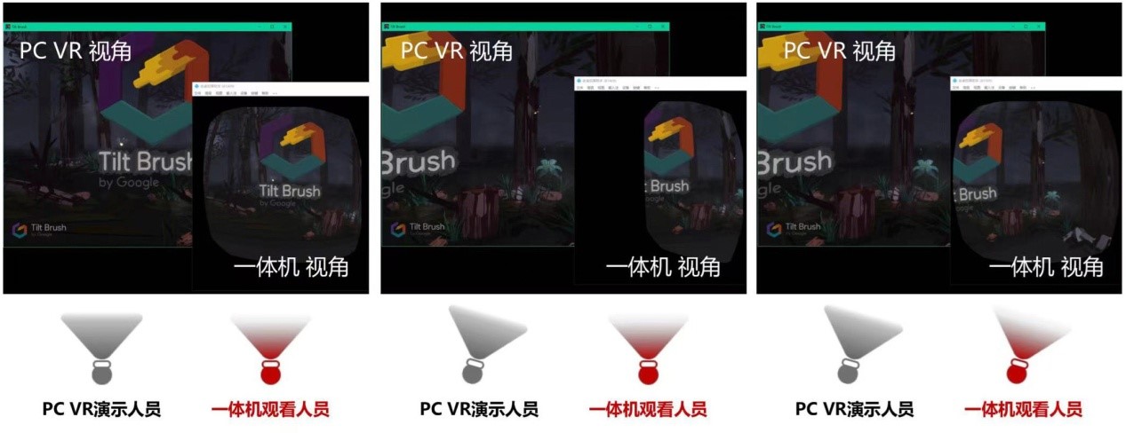 大朋VR打破固有VR一拖多模式,分机采用P1系列一体机,与主机电脑并联同个局域网,摒除分线器模式,流畅获取教培信息。较以往国内一拖多方案,新方案主机可用大朋VR E3-4k,E3C或