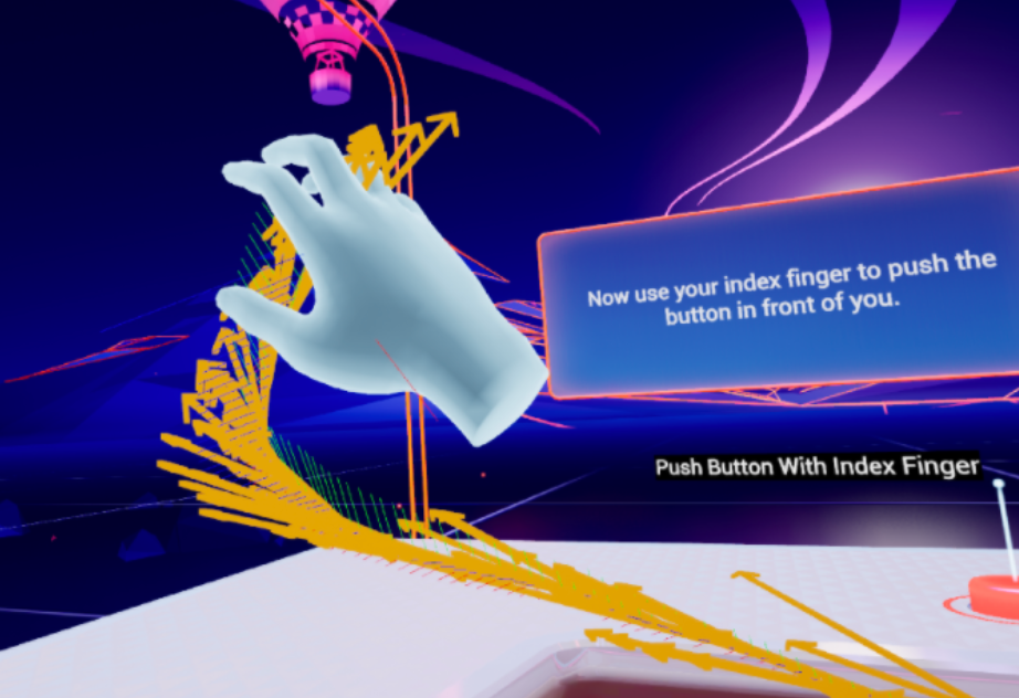 由于它依赖于以手为中心的交互和近场对象操纵机制,我们将手部追踪(用双手代替Touch控制器的能力)纳入至到《First Steps》,以这种方式探索手部追踪集成的潜力,以及向现有应用添加“真实双手”的挑战。