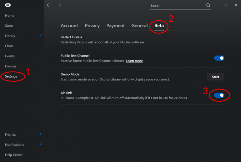 如果没有,请依次转到“Setting/设置”和“Beta”选项卡。启用“Public Test Channel/公共测试频道”选项,然后返回“Library/库”和“Update/更新”选项卡,查看是否出现“Oculus Software Update/软件更新”。