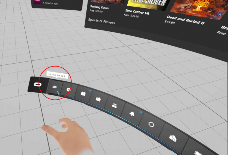 如果你想退出,你可以打开Oculus Dash菜单(单击右手控制器的菜单按钮)以退出Oculus Air Link。请在菜单栏的最左边找到Oculus Air Link。