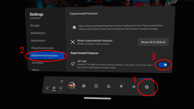这时Quest 2和PC都将运行正确版本的软件,然后你可以激活Air Link,从而以无线方式畅玩PC VR游戏。