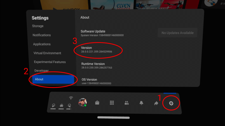 Oculus Air Link要求Quest 2头显和Oculus PC软件都运行v28或更高版本。以下是检查方法: